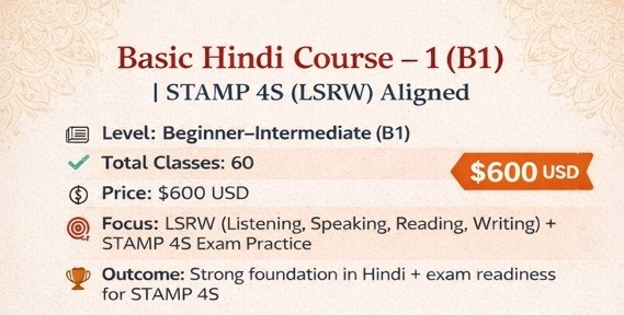 Basic Hindi Course – 1 (B1) | STAMP 4S (LSRW) Aligned