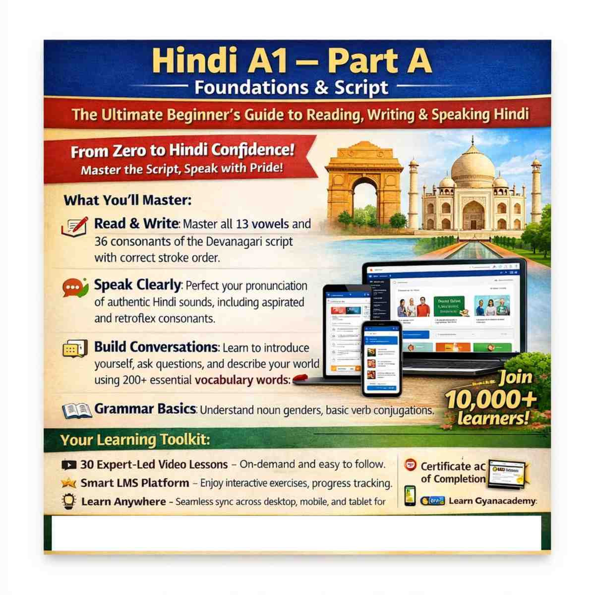 - 🔹 Exclusive access to Gyan Academy’s “Hindi Learning Toolkit” (PDF + Audio)